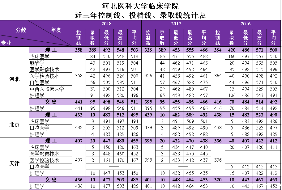 米兰体育官方网页2016-2018年控制线、投档线、录取线统计表